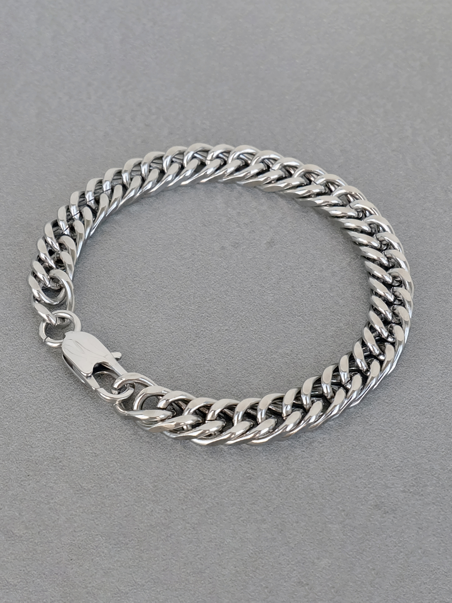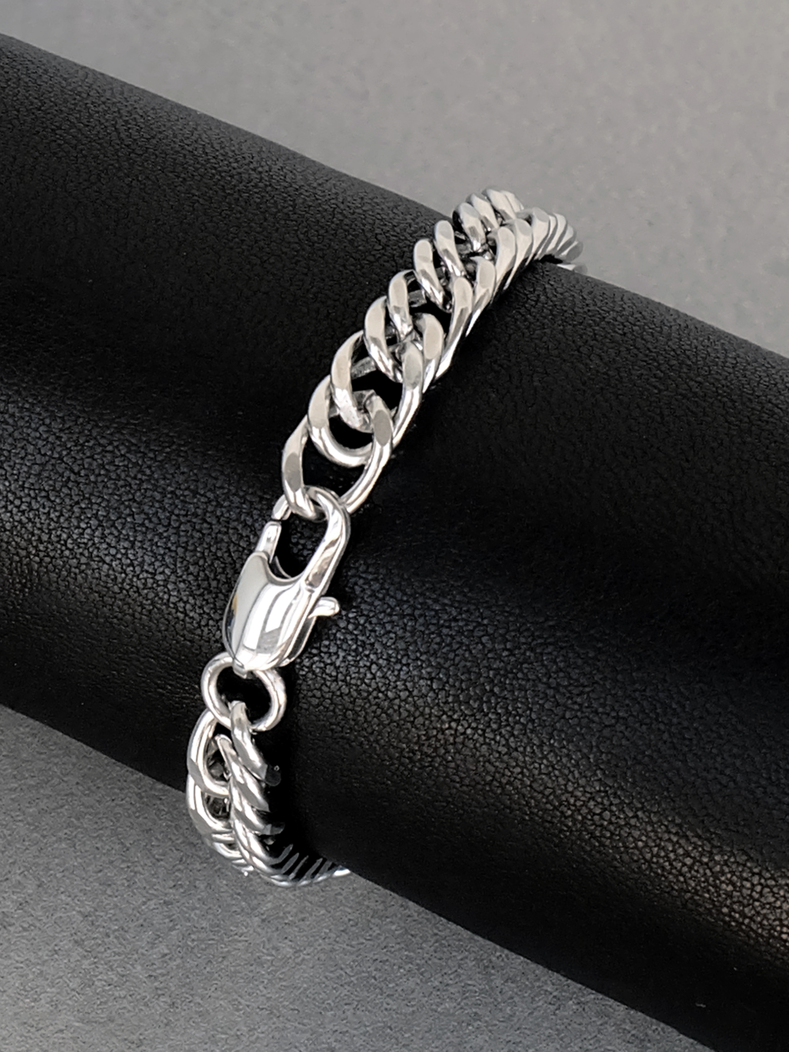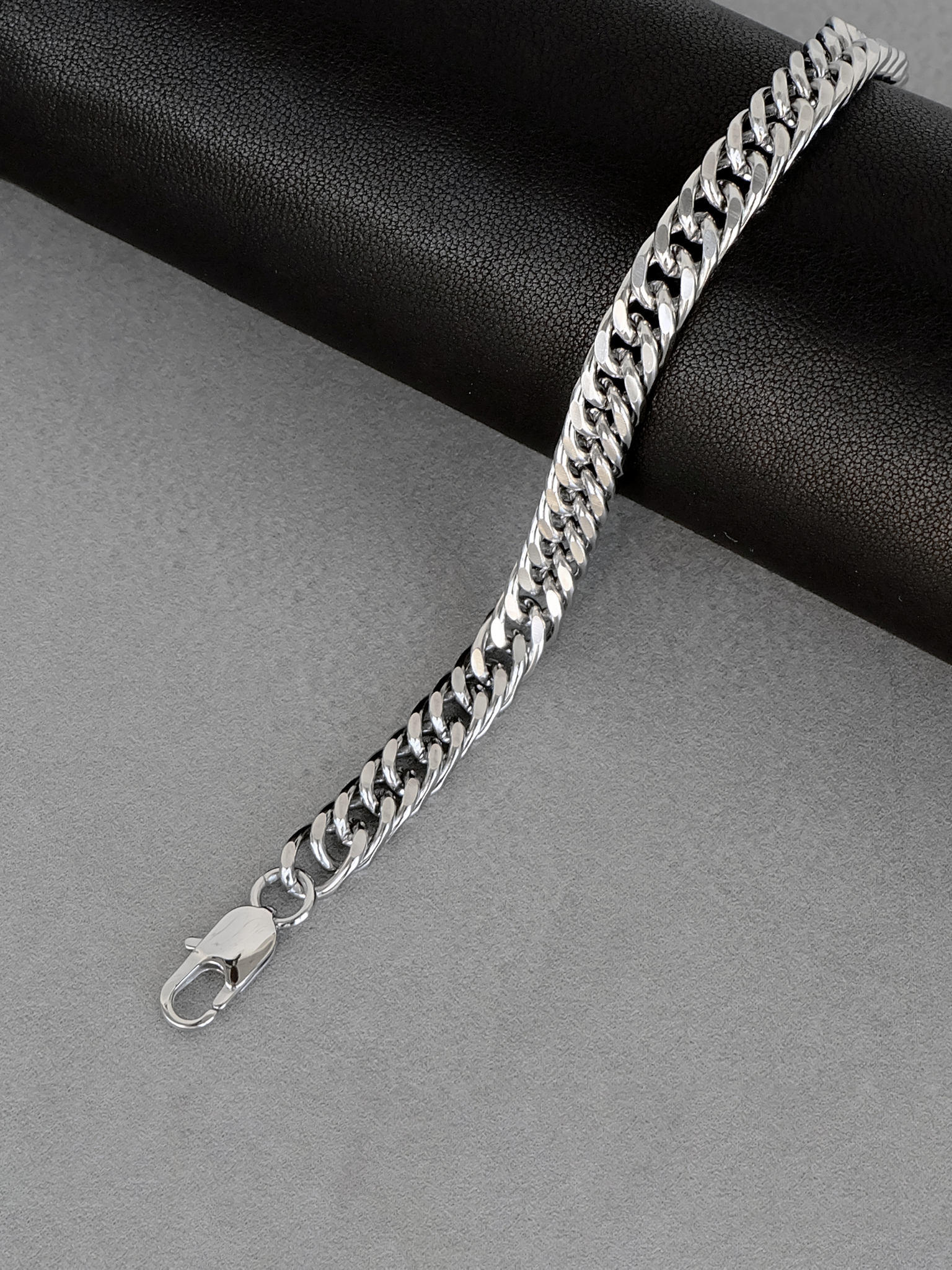 Мужской браслет изготовлен из стали марки 316L. Браслеты из нержавеющей стали 316L (другие названия - хирургическая или ювелирная сталь) со временем не темнеют и не окисляются, а так же не вызывают аллергии.