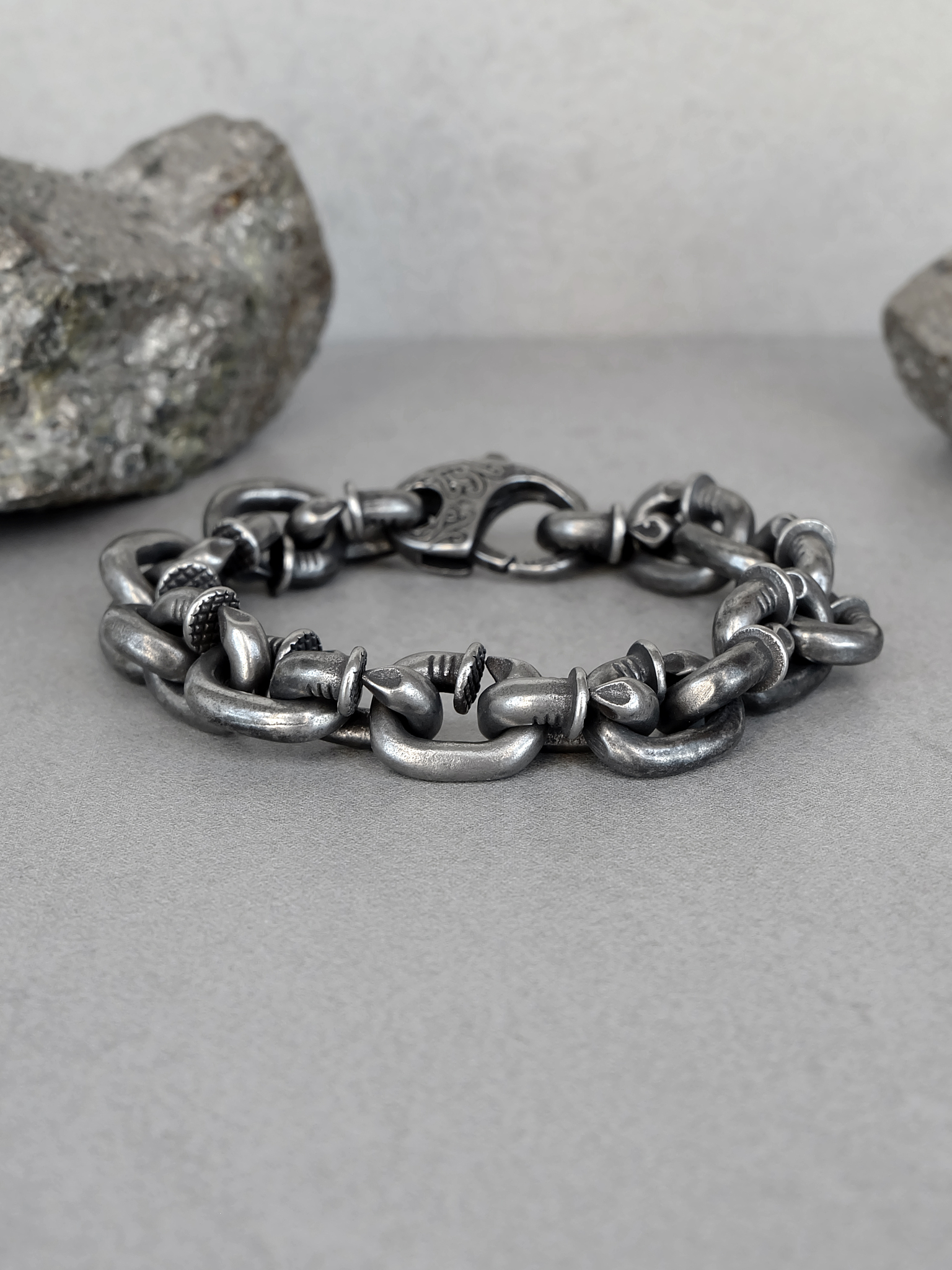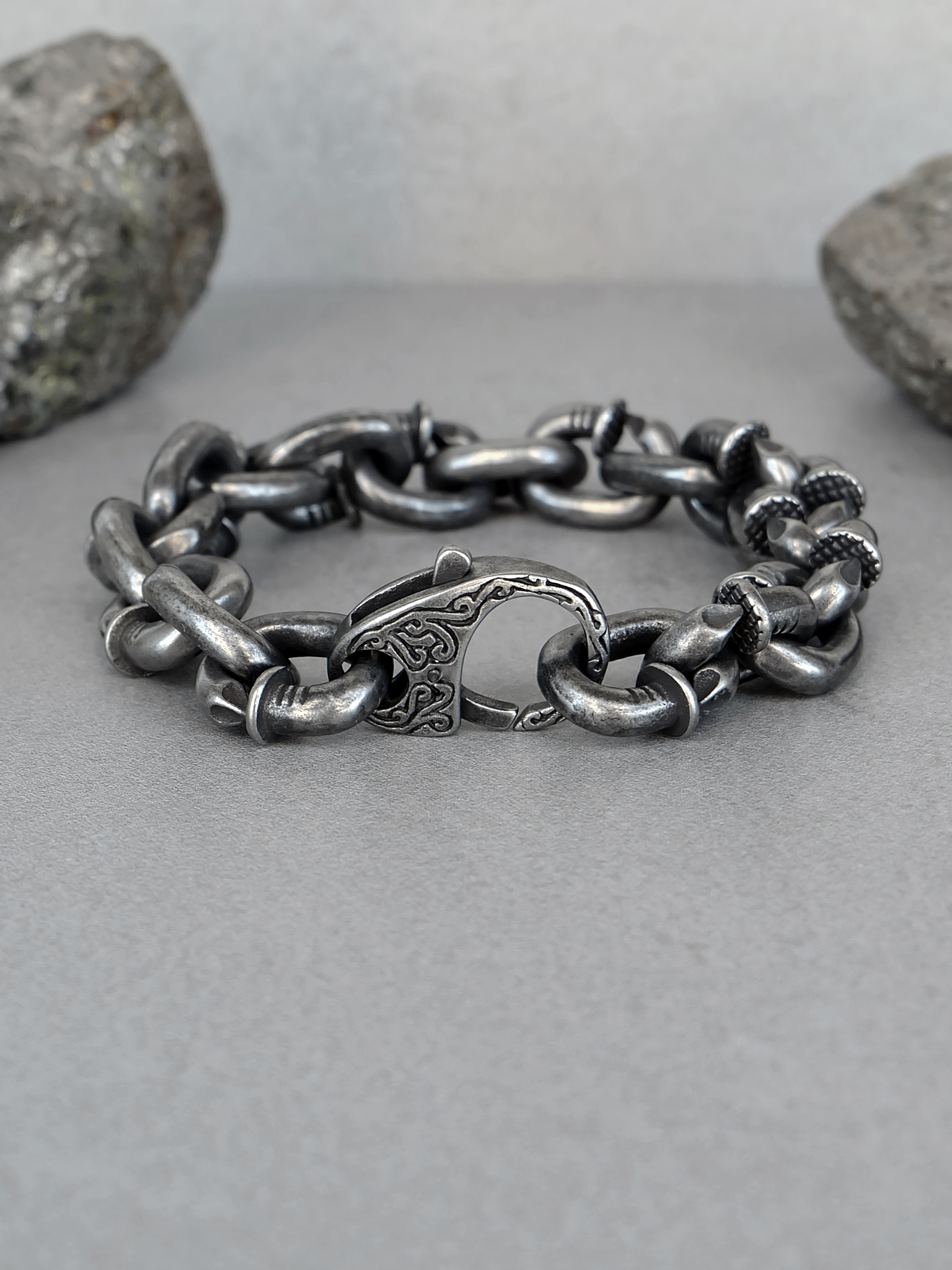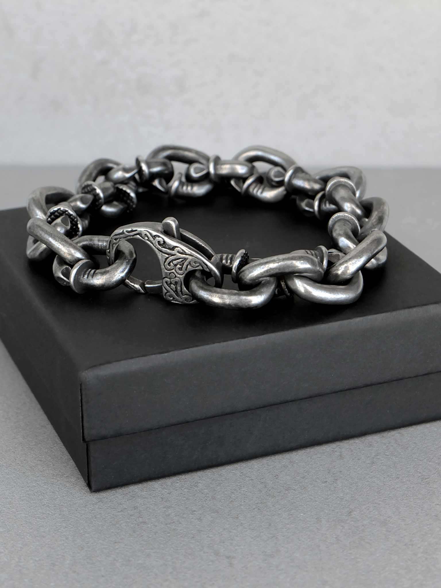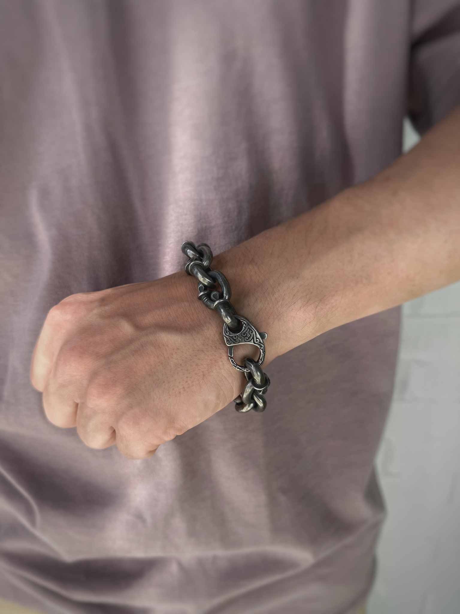 Мужской браслет изготовлен из стали марки 316L. Браслеты из нержавеющей стали 316L (другие названия - хирургическая или ювелирная сталь) со временем не темнеют и не окисляются, а так же не вызывают аллергии.