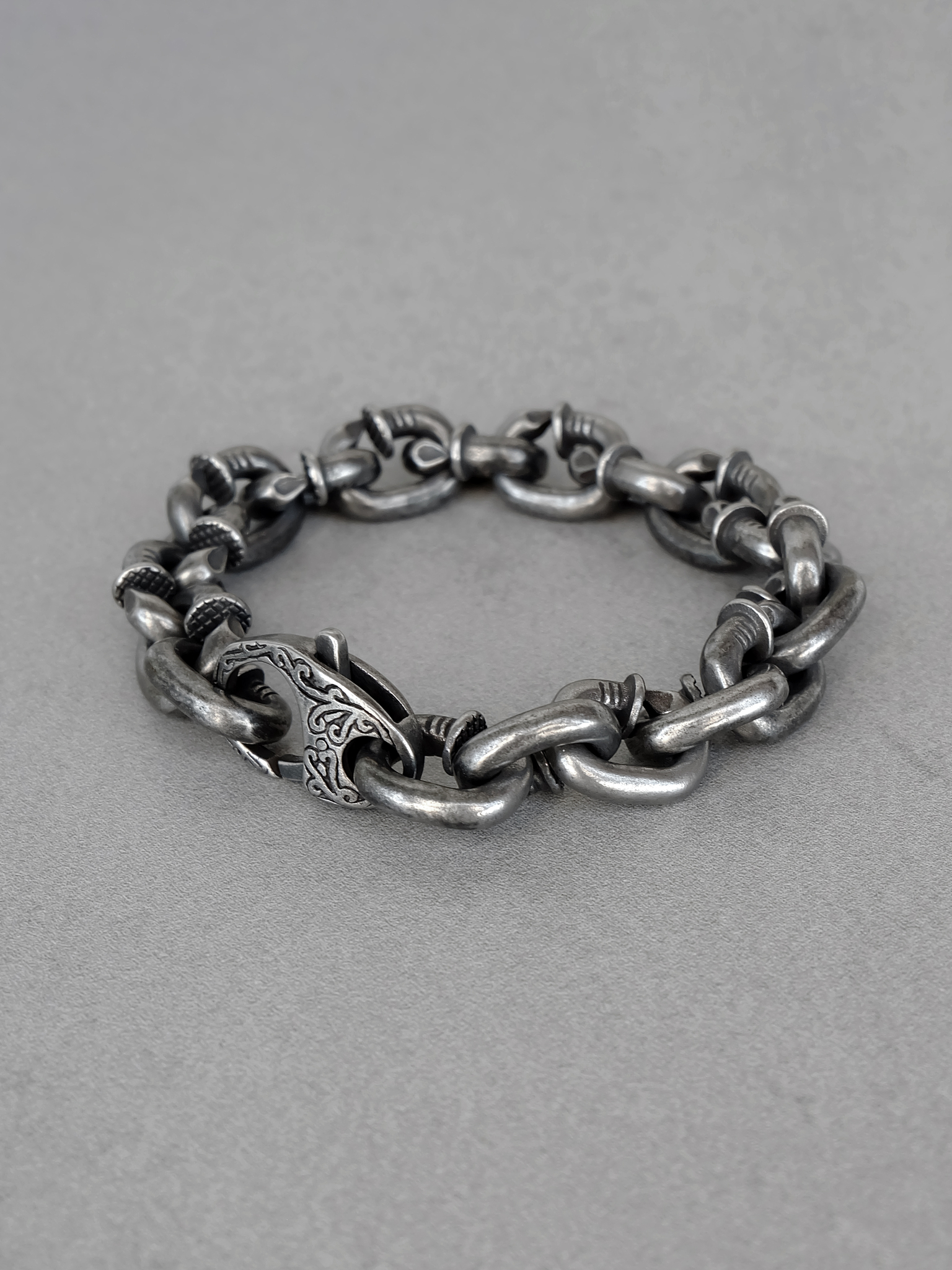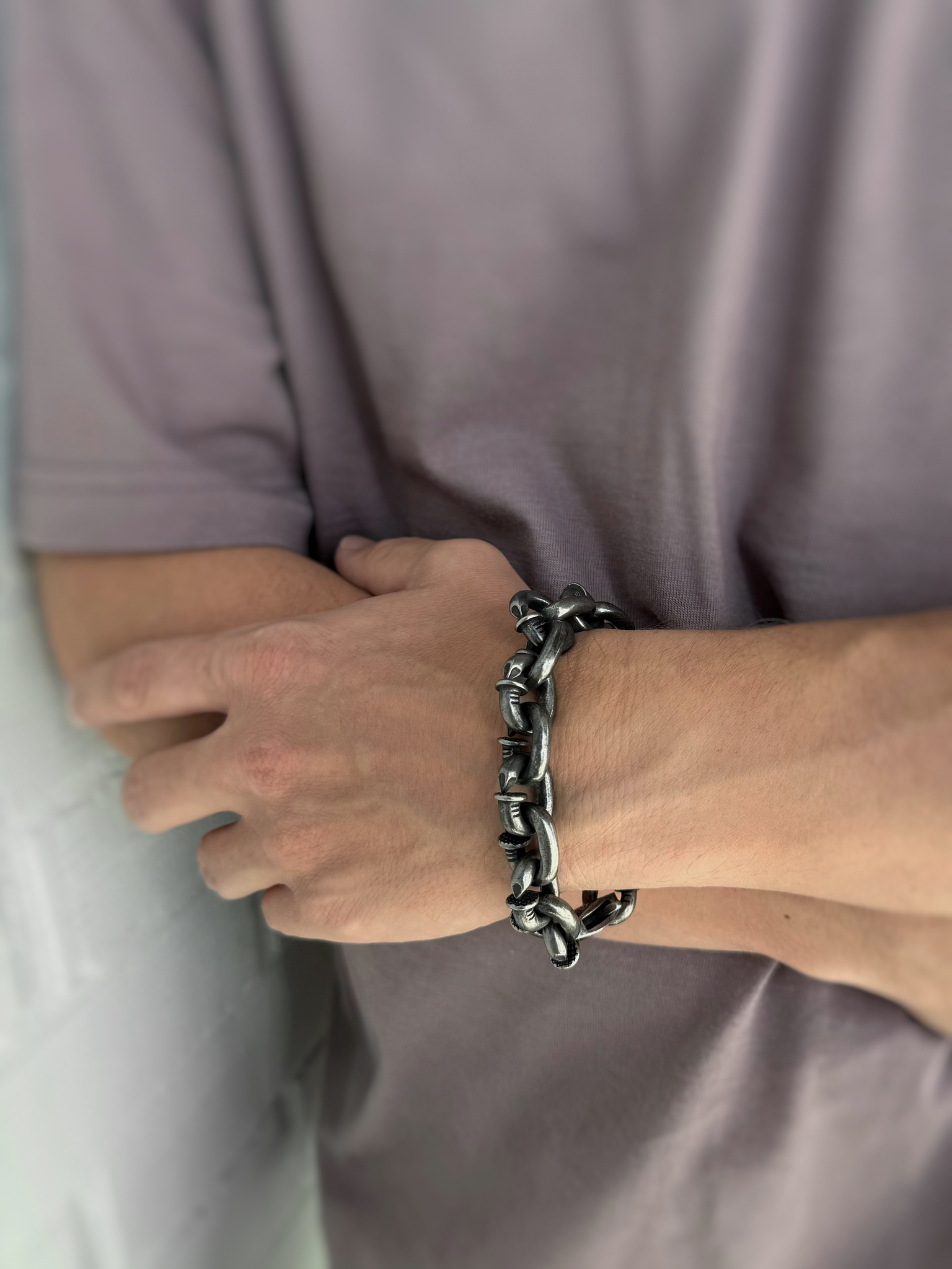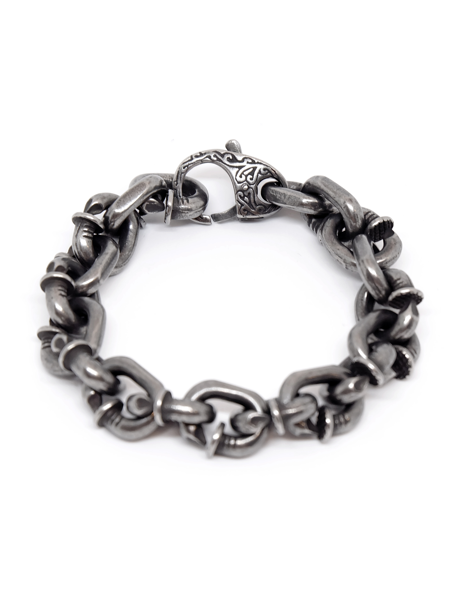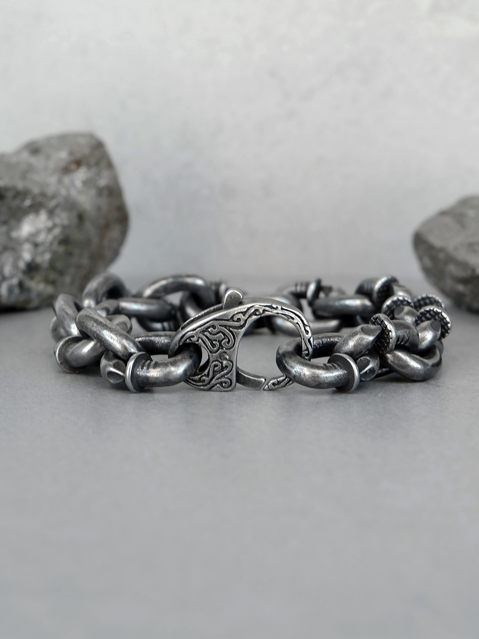 Мужской браслет изготовлен из стали марки 316L. Браслеты из нержавеющей стали 316L (другие названия - хирургическая или ювелирная сталь) со временем не темнеют и не окисляются, а так же не вызывают аллергии.