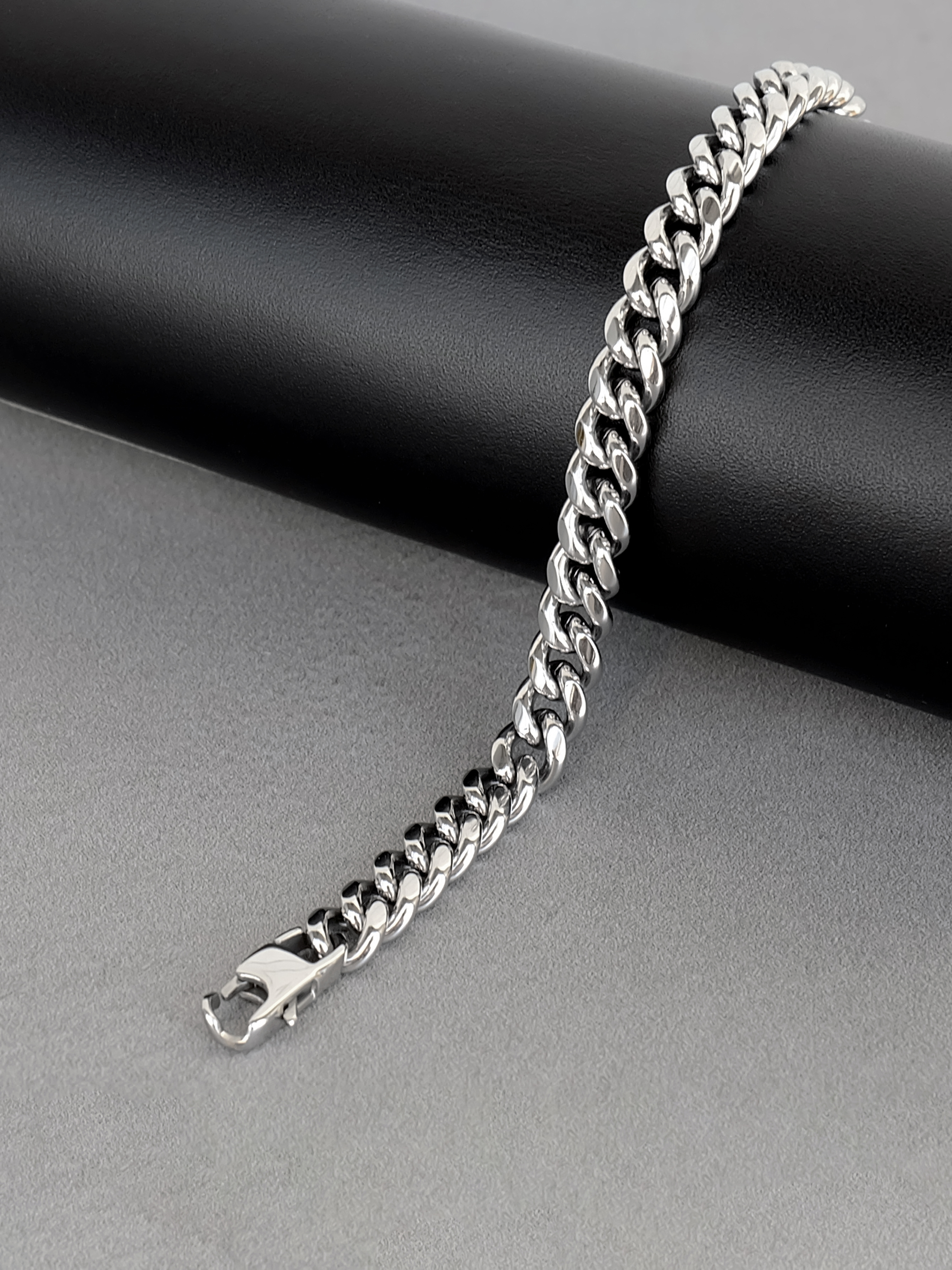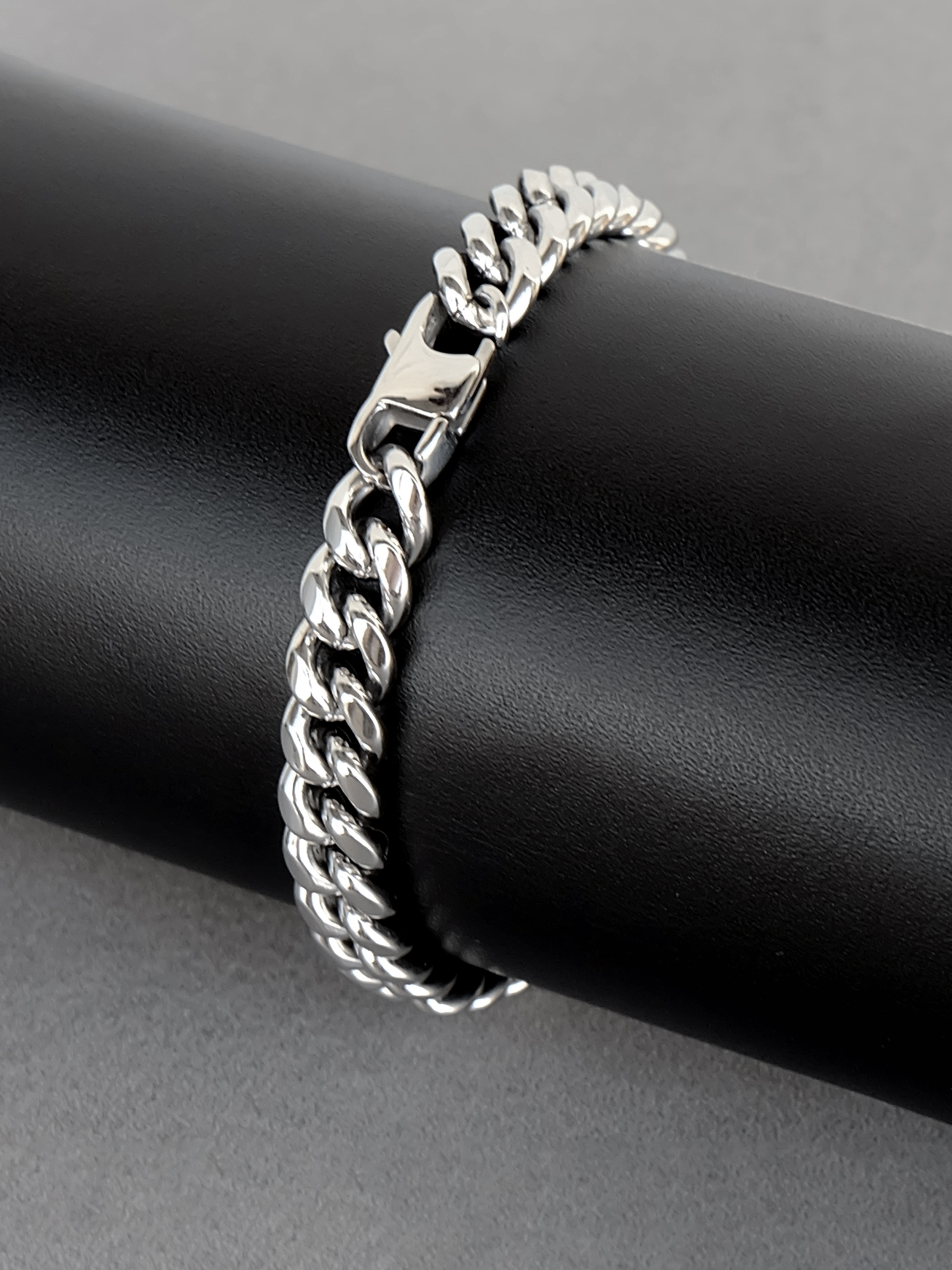 Мужской браслет изготовлен из стали марки 316L. Браслеты из нержавеющей стали 316L (другие названия - хирургическая или ювелирная сталь) со временем не темнеют и не окисляются, а так же не вызывают аллергии.